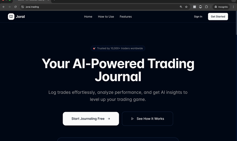 JORAI AI TRADING PLATFORM IS A TOOL THAT HELPS YOU Log trades effortlessly, analyze performance, and get AI insights to level up your trading game.